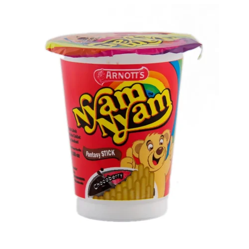Nyam Nyam biscuit sticks come in a variety of flavors, including chocolate, strawberry, vanilla, and more. The biscuit sticks are crispy and have a light, airy texture